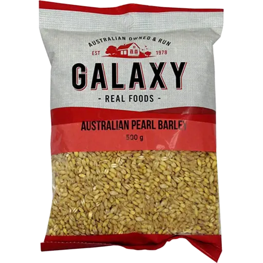 Galaxy Australian Pearl Barley is a versatile, nutrient-dense grain that brings wholesome goodness to your kitchen. This premium 500g pack delivers tender, creamy pearls perfect for hearty soups, risottos, salads, and side dishes. Rich in fibre and plant-based protein, pearl barley supports digestive health while keeping you satisfied longer. Quick-cooking and easy to prepare, it's an ideal pantry staple for busy home cooks seeking nutritious, budget-friendly meals. Elevate your everyday cooking with this quality Australian grain.