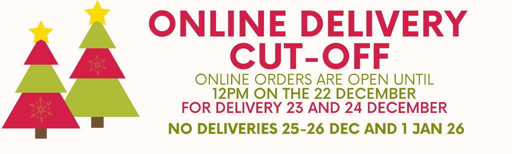 We also offer a click and collect service. You can order online (no minimum order required) and collect your order from any of our three stores from 10am to 6.30pm weekdays and between 10am to 3pm on Saturday’s.